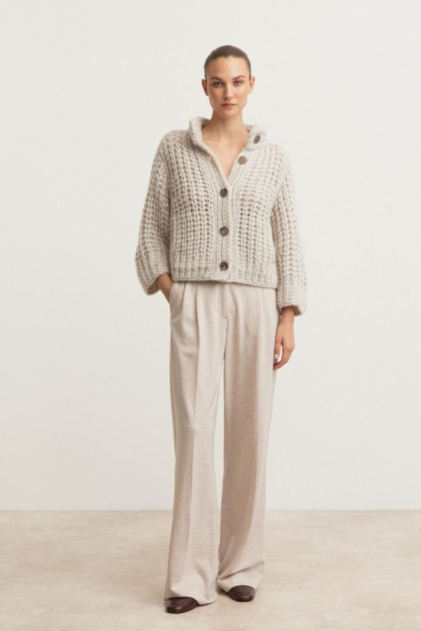 Handknit is the heart of the IRIS VON ARNIM collection: the designer laid the foundations for her brand with hand-knitted creations. As an expression of individuality and tradition, our hand-knitted models combine traditional craftsmanship with modern design. Meticulously crafted with great attention to detail, each piece becomes a unique creation. The chunky knit and distinctive texture give this jacket a characteristic, individual look.