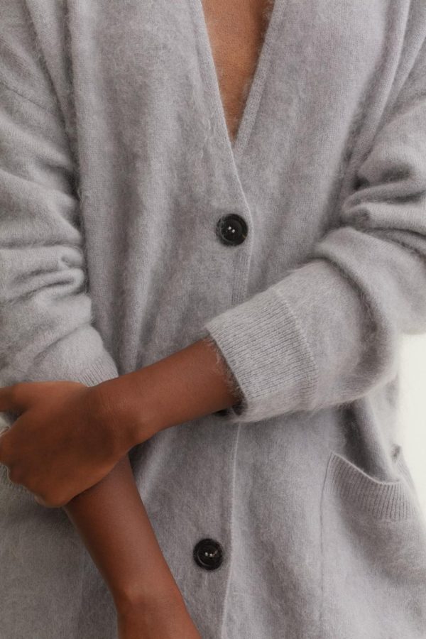 Women Knitted Coats | Iris Von Arnim ERLA Brushed Cashmere Sweater Steel
